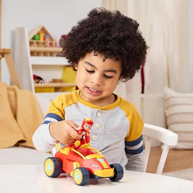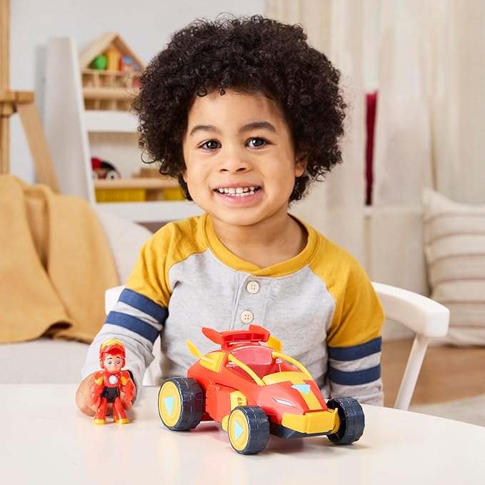 - SERIES-INSPIRED DESIGN: The poseable Iron Man Super Hero action figure mech suit and race car toy feature design and deco inspired by the Disney Jr. series Iron Man and his Awesome Friends