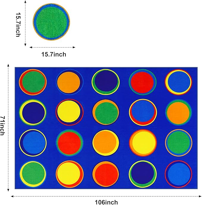 - 【Large Classroom Rug】:108"L x 72"W(20 seats) Suitable for schools, daycares and other educational settings, a great helper for teachers.A simple, ''Please sit on the carpet'' request by a teacher means that students know exactly where to go