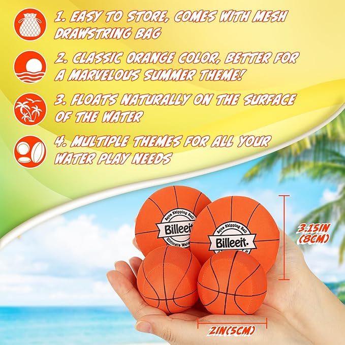 - 2. Vibrantly Colored & Easy to Spot: This set includes 2 balls, 2 discs, basketball theme, resilient to wear and tear, providing months of amusing, water-hopping joy.
