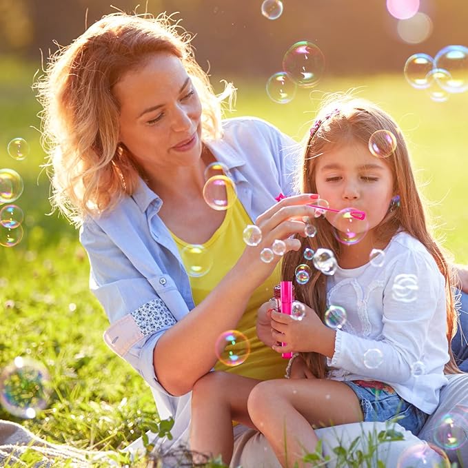 - Fun Bubble Maker Toy:Each bubble wand measures 4 inch, suitable for everyone to hold and play.Containing 0.2 oz bubble solution, it can create endless durable bubble and provides hours of joy.Great small bubbles for party favors, bonding toy for friends and family.