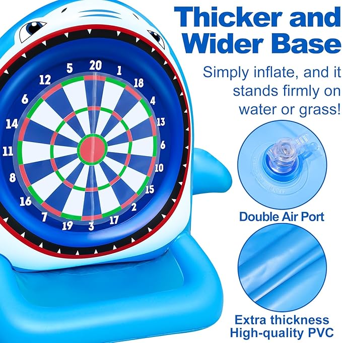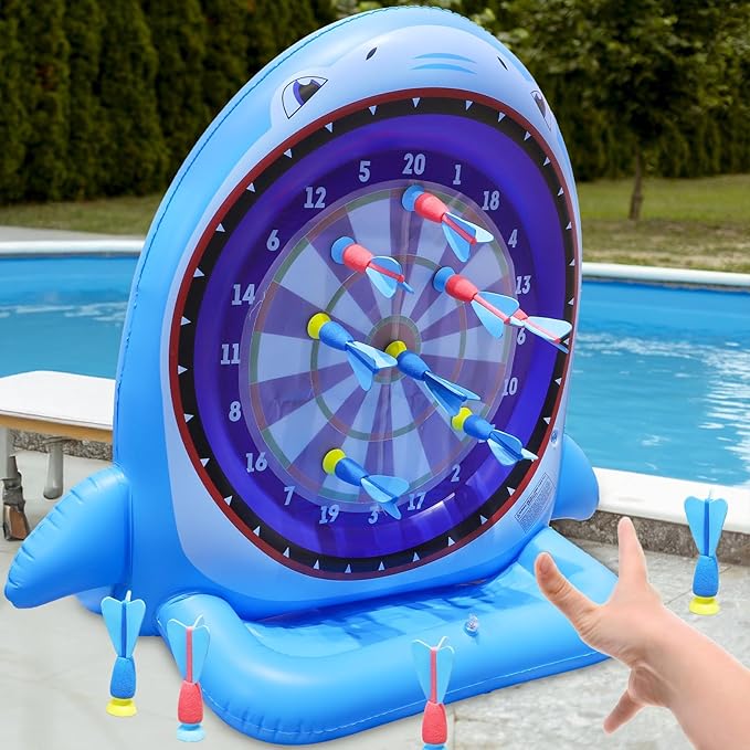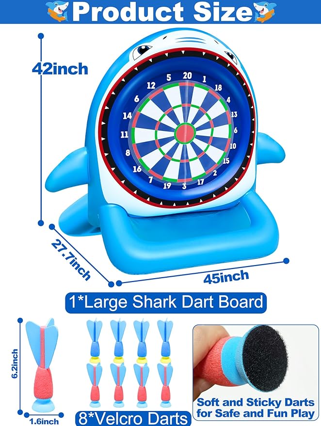 - Perfect Gift for All Ages: The Inflatable Shark Dart Throw Game set is an excellent gift for boys and girls aged 6-12, as well as children, teens, and even adults! Whether it's in the pool, at the beach, or in the backyard, this product brings endless fun and challenges for kids