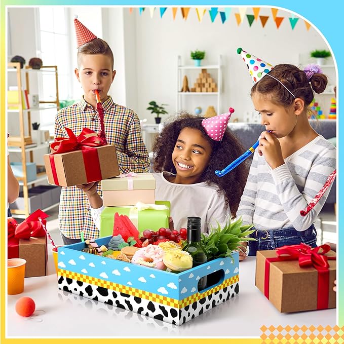 - Reusable, Sturdy and Distinctive Design: the cartoon snack holder is made from solid wood, sturdy for long term use, and easy to clean; The cartoon toy candy tray is printed cow patterns, blue sky and white cloud, this cartoon candy organizer makes people feel fresh and cute, leaving unforgettable memories for you and guests, add a festive and joyful touch to your family gatherings, enhancing the cartoon party experience