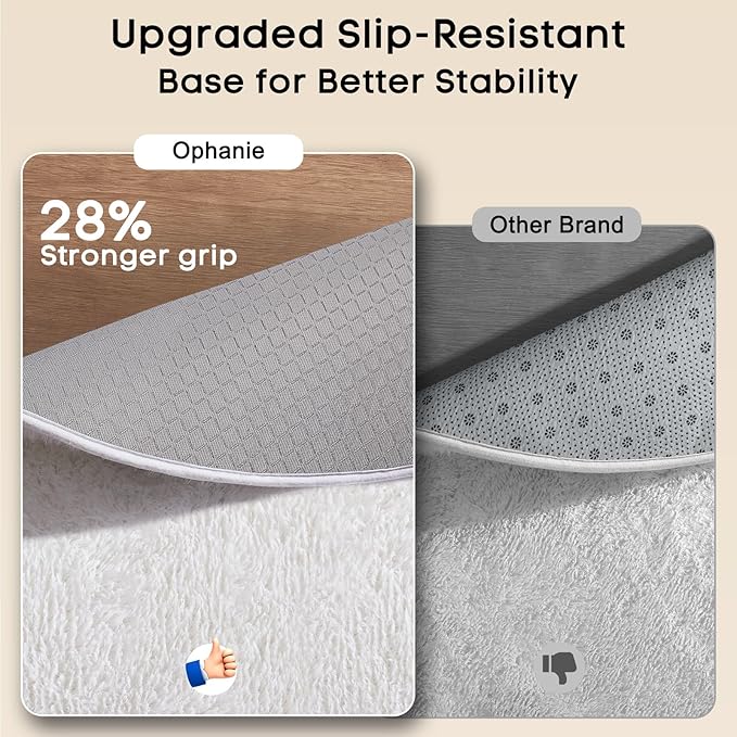 - Ultra Soft & Non-slip: Featuring a shaggy carpet surface, the Ophanie soft area rug is highly soft with a high-density sponge interlayer. This rug effectively reduces shedding, and the non-slip bottom with small, durable anti-slip dots enhances friction to prevent sliding.