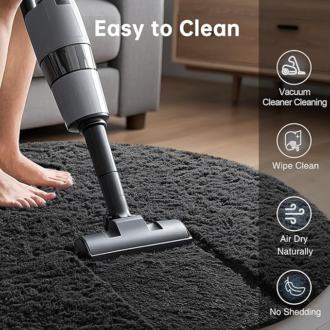 Ophanie Round Rug 4Ft Black Circle Area Rug, Room Decor for Men, Fluffy Fuzzy Bedroom Carpet, Plush Soft Shaggy Living Room Rugs for Kids Home Decor Aesthetic, Nursery
