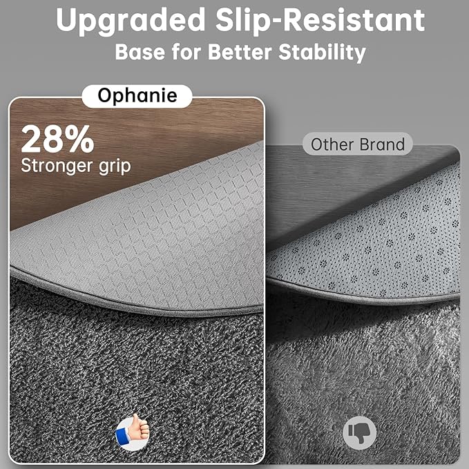 - Ultra Soft & Non-slip: Featuring a shaggy carpet surface, the Ophanie soft area rug is highly soft with a high-density sponge interlayer. This rug effectively reduces shedding, and the non-slip bottom with small, durable anti-slip dots enhances friction to prevent sliding.