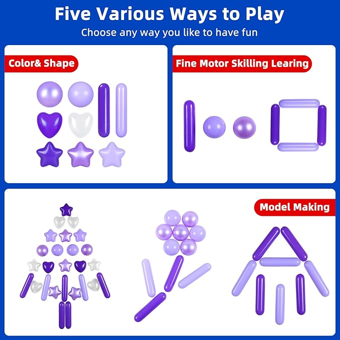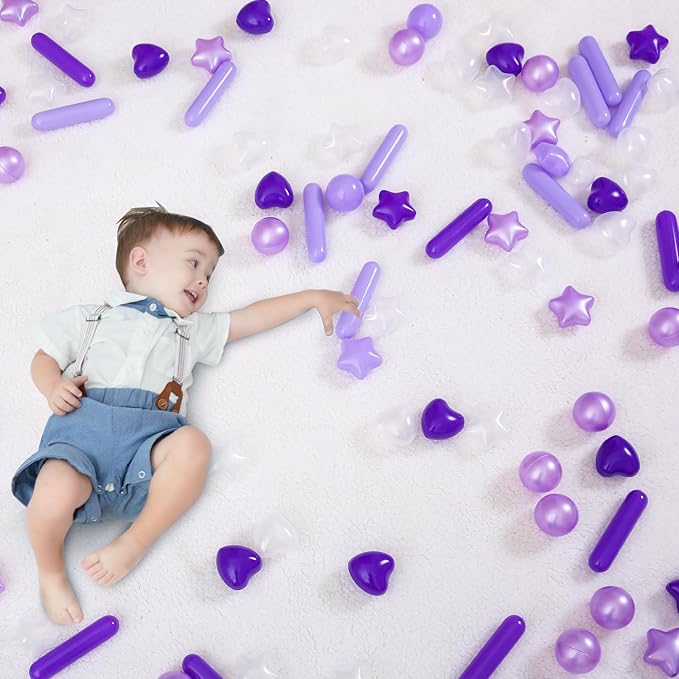 - MULTIPLE SHAPES : stars,balls, candy balls, The lastest color combinations, very suitable to match the girl boy ball pit, theme party, playground at home, clean, bright color combination will be ideal for wedding decoration or photo background. Fall-resistant and inflatable plastic balls can survive any child abuse!