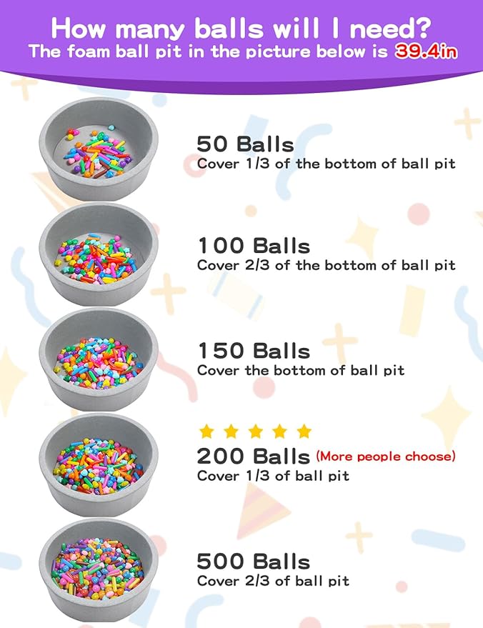 - SO MANY USES: It is very suitable for filling any ball pit, play tent, play room, baby swimming pool, play fence and bounce room. With these ball pit balls, preschoolers will have hours of fun counting, tossing, catching games, party DIY Decoration supplies