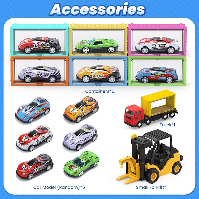 - Storage Function:Equipped with 6 containers, 6 small cars, and 2 construction vehicle toys, the transport container ship features an openable hull with ample storage space. The containers can be stacked together for storage, saving space while also helping to cultivate children's organizational habits.