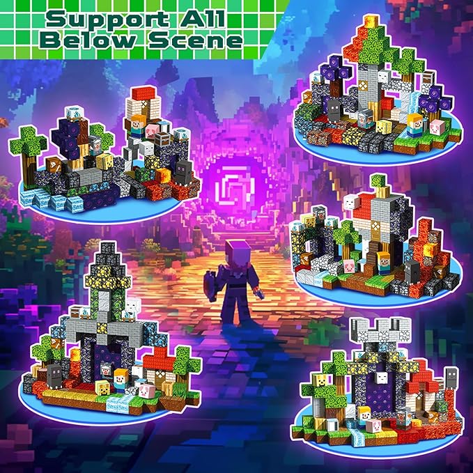 - 【Imaginaions & Creativity Builder】Let's embark on an adventure with magnetic building blocks! Spark the imagination of children with themes of lava, portal and forest. These magnet blocks encourage open-ended play, allowing kids to construct, demolish, and rebuild as they please. Safe, durable, and designed for little hands, our magnetic cubes make learning fun, enhancing focus, patience, and motor skills—ideal toys for kids 3+ years old.
