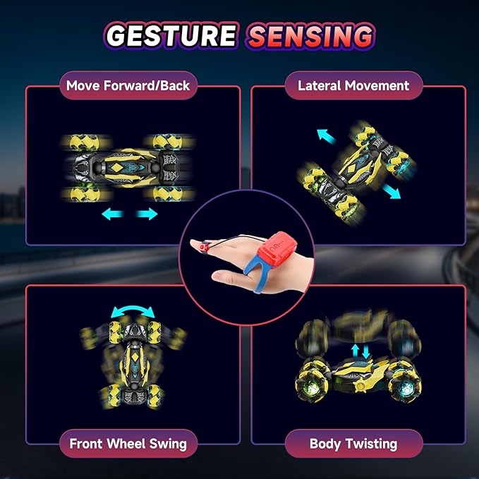 - 【Gift for RC Car Enthusiasts】 The gesture sensing off-road car with lights, music, drift traversing can handle different indoor and outdoor terrain.Kids can quickly master the art of racing, perform cool tricks, and push the limits of their imagination. This makes it a good idea of Christmas or birthday gift for boys and girls aged 6 7 8 9 10 11 12.