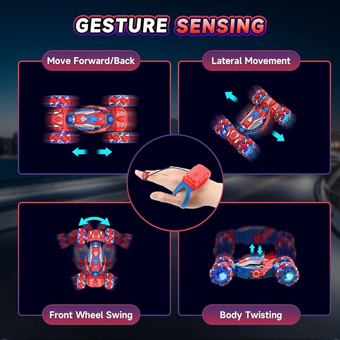 - 【Gift for RC Car Enthusiasts】 The gesture sensing off-road car with lights, music, drift traversing can handle different indoor and outdoor terrain.Kids can quickly master the art of racing, perform cool tricks, and push the limits of their imagination. This makes it a good idea of Christmas or birthday gift for boys and girls aged 6 7 8 9 10 11 12.