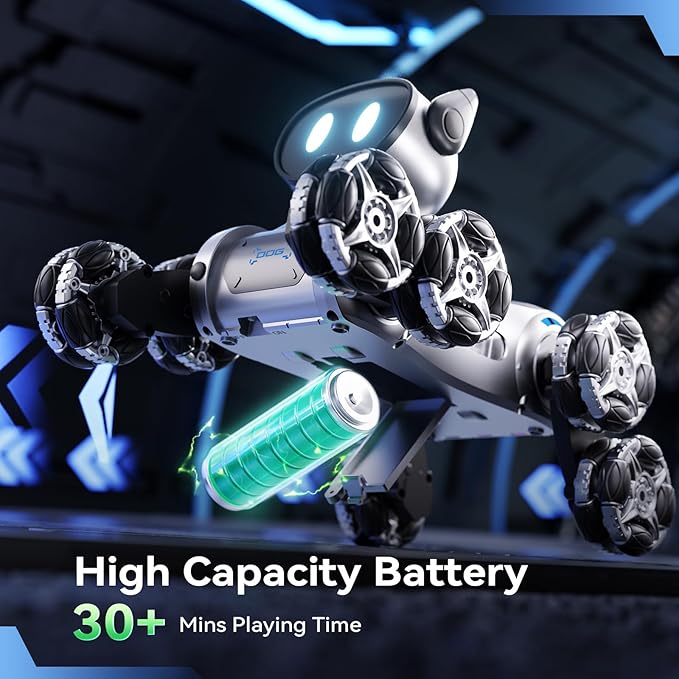 - High Capacity Battery & Safe Design ----- This robot dog is equipped with a large capacity 3.7V battery, providing 30+ minutes playing time. Additionally, designed with a battery compartment at the bottom to hide the battery and protect children from playing with it.