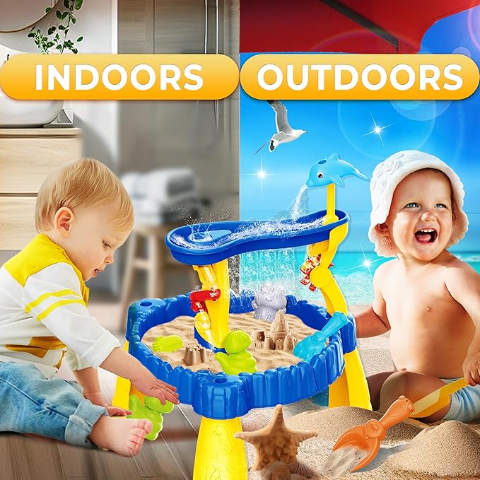 - Ideal Outdoor Toys For Kids: The sand and water table provides a variety of outdoor activities for kids and can be used as a water activity table at the beach, pool, backyard, and more. It is not only fun for kids to enjoy anywhere in the summer, but also an ideal addition to any festivals such as birthday parties, Christmas, and holidays