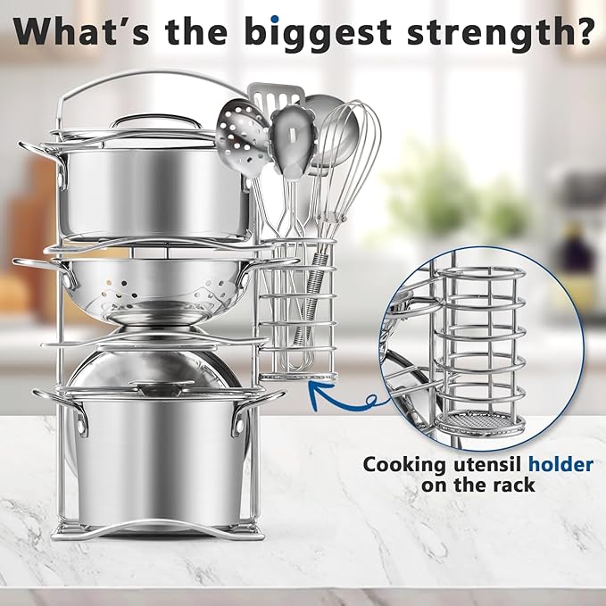 - The playset contains 12 Pcs common pots, kitchen utensils and rack, is often played with play kitchen set or food set.
