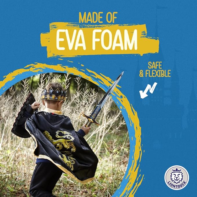 - THE SWORD AND SHIELD are made from soft and flexible foam, ensuring safe and exciting pretend play. Featuring royal Triple Lion decorations, young kings and queens can defend their castle with courage and honor.