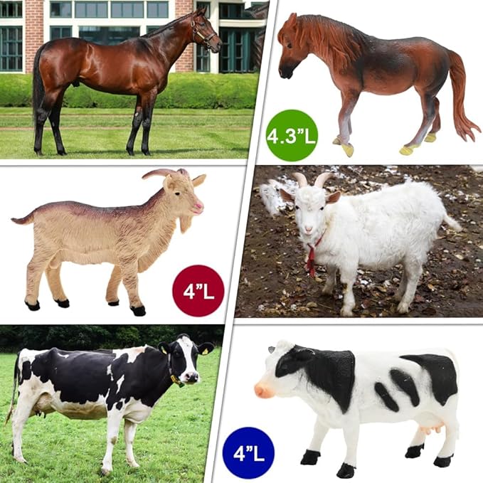 - High-Quality: Our barnyard animal toys is constructed from premium ABS plastic, ensuring a non-toxic, BPA-free, and odorless play experience. These eco-friendly materials, combined with hand-painted detailing, lend a touch of realism to each figurine. Designed to fit perfectly into children, these farm animal toys encourage tactile interaction and sensory exploration.