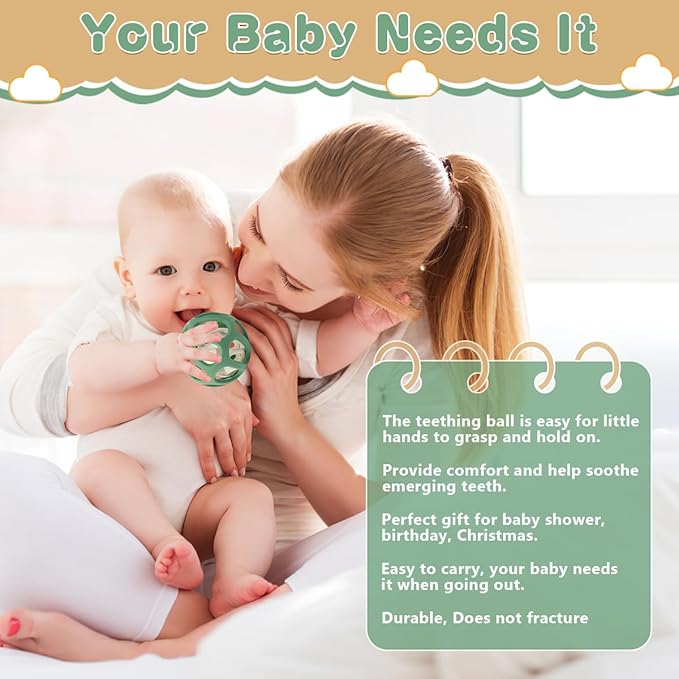 - 【Perfect Gift Idea】The baby teething toy with a gift box, the baby chew ball toy would be an perfect gift choice for newborn babies during the baby shower, Birthday, teething time, Thanksgiving, Christmas, New Year.