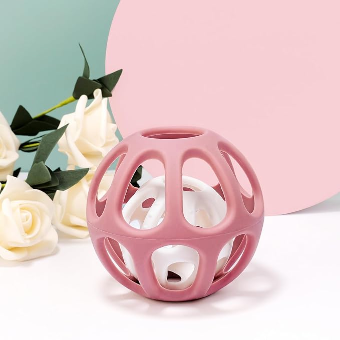 - 【Teething Relief】The soft teething toy eases the discomfort of teething and helps your baby get through the painful teething time. Lightweight and compact, the baby teether ball is easy to fit into a diaper bag.