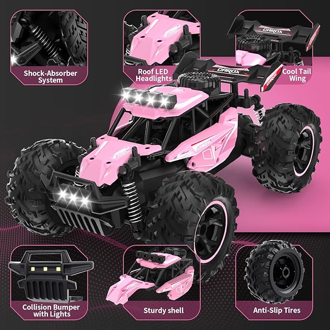 Carox Remote Control Car, 2.4GHz 25KM/H High Speed RC Car, 1:18 Off-Road Monster Truck with LED Lights and 1800mAh Rechargeable Battery – Ideal Gift for Boys 6+