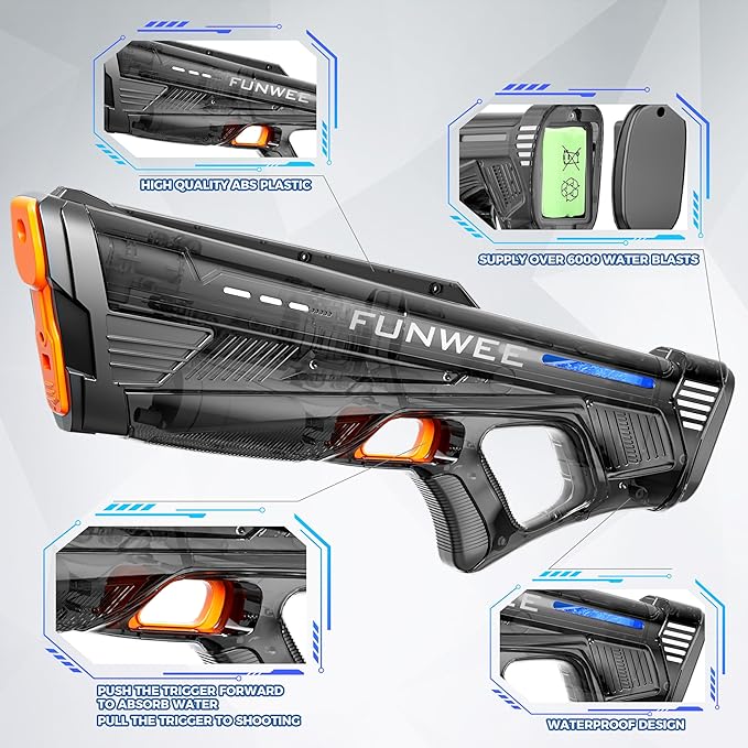 - 【2025 NEW UPGRADED Squirt Watergun】New upgraded battery operated transparent summer watergun electric with new appearance & more interesting functions.