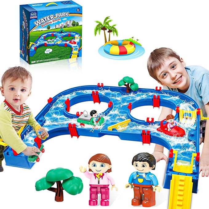 - Summer Enjoyable Water Toy: This kids water table toy comes with 54pcs building blocks that parents can assemble easily. It is the suitable for outdoor water activity for kids to cool off at home during the hot summer months. Waterway is suitable for children. Let your children embrace their playful spirit and enjoy splashing around with this fantastic water toy