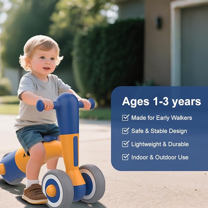 - Perfect First Balance Bike for 1–2 Year Olds (8–24 Months) Lightweight frame and low-step design allow toddlers to scoot, glide, and build confidence while learning to balance and ride.