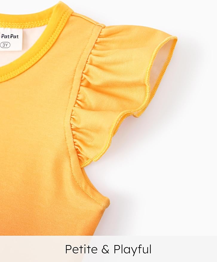 • Charming & Unique Designs: This flutter-sleeve dress features a loose fit for comfort and practicality. The design showcases Moana, Pua, and Hei Hei from Moana, set against a vibrant orange gradient bodice, paired with a sun-patterned skirt inspired by Polynesian motifs for a tropical, adventurous look. With its fit-and-flare silhouette and breathable fabric, it ensures all-day comfort for little girls