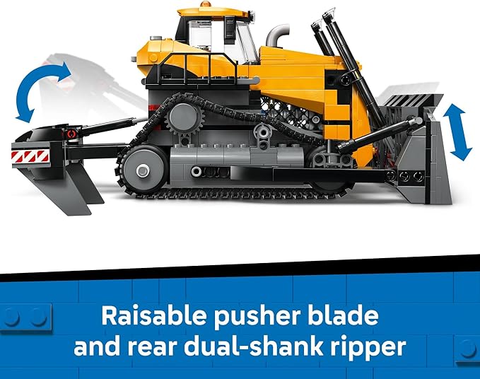 - BUILD LIKE THE PROS - Builders 8 years old and up can experience the thrill of big trucks and construction sites with the LEGO City Yellow Bulldozer (60466) set, featuring authentic construction functions