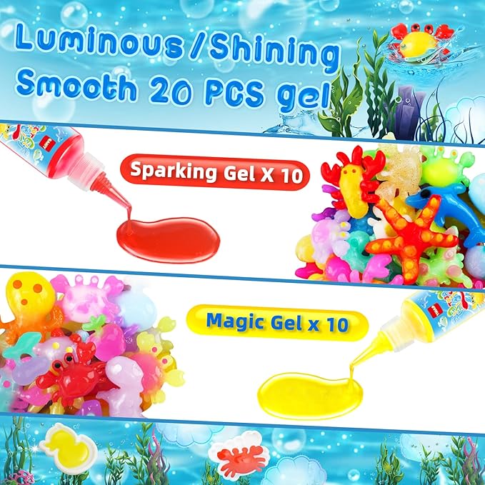- Creativity and Imagination: The aqua gel magic water squishy let your child create their own 3D sea creatures, develops children's hands-on creativity and their imagination while playing, this water squishy kit is both educational and fun.