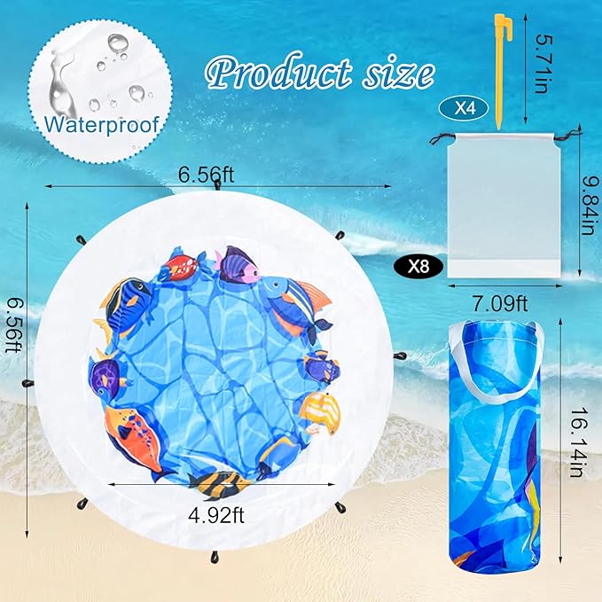 - Portable & Practical: You will receive a round beach pool with a diameter of 2m/6.5 feet, 8pcs drawstring weight bags, 4pcs ground nails, and a waterproof carry bag for easy storage. The waterproof tote can also be used to fill your pool with water so you don't need to bring an extra bucket when traveling to the beach, simple and convenient.