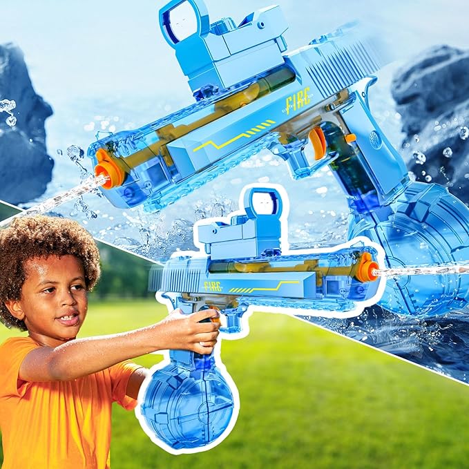 - 🌊【Large-capacity Water Storage Tank】-- It adopts a 500ml large-capacity water storage tank, allowing you to store a large amount of water at once. Whether it's a sustained shoot or a long gaming session, you'll enjoy uninterrupted water power. One-button water tank replacement design, no need to worry about less water allows you to join the water gun battles faster. Enjoy your summer game!