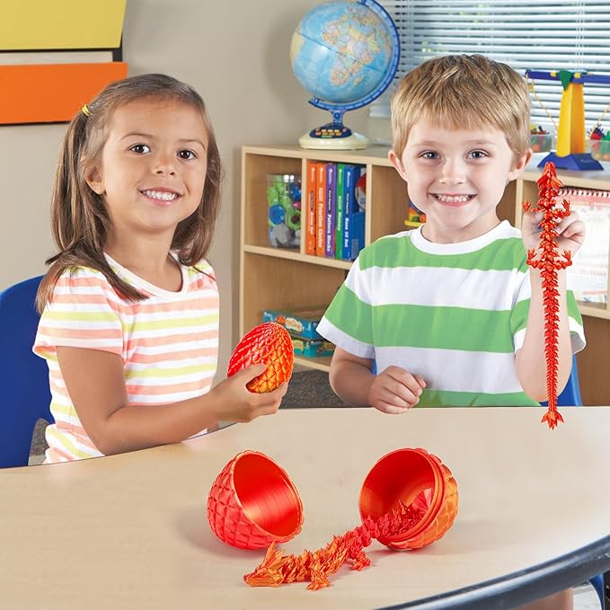 - Versatile, Fun, and Stress-Relieving: This set is not just for display—it’s designed for imaginative play and relaxation. The dragon’s articulated joints allow for various poses, making it a fun desk companion or stress-reliever. Fidget with it while working or studying to spark your creativity. Its compact size makes it the perfect addition to any desk or space, adding imaginative and inspirational. (Package Included: 1 * 12-inch 3D printed dragon and 1 * 4.72-inch printed dragon egg)