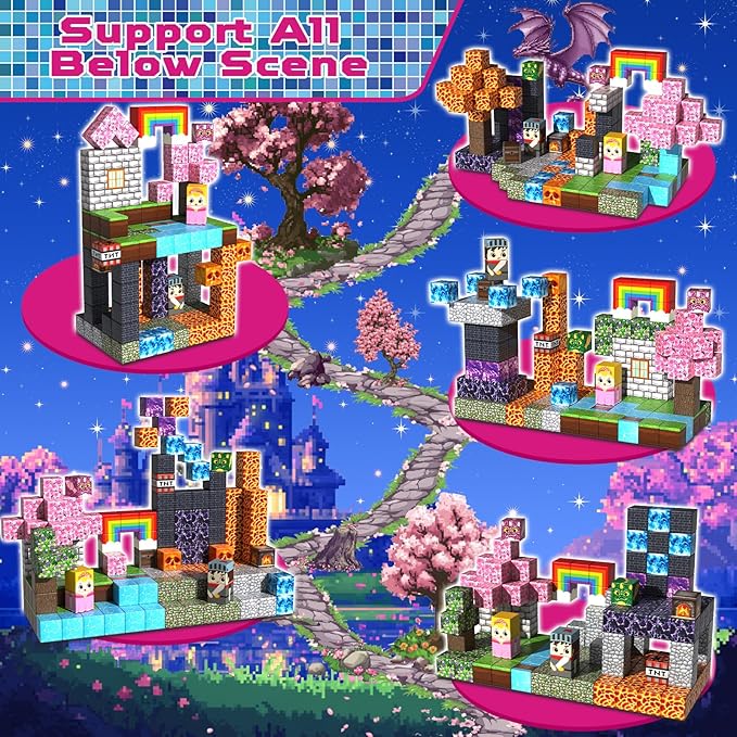 • 【Imaginaions & Creativity Builder】Let's embark on an adventure with magnetic building blocks! Spark the imagination of children with themes of lava, portal and forest. These magnet blocks encourage open-ended play, allowing kids to construct, demolish, and rebuild as they please. Safe, durable, and designed for little hands, our magnetic cubes make learning fun, enhancing focus, patience, and motor skills—ideal toys for kids 3+ years old.