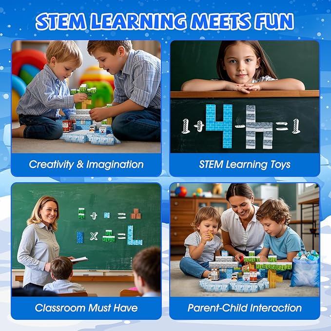 - 【Exciting Frozen Magnet 3D World】Embark on thrilling quests with our 130 pieces Magnetic Building Block Set and experience an exciting portal adventure!Kids can build their own 3D magnet world with using these variety envouriments such as snowman ,ice cube,trees and others.From simple to challenging builds,experience the fun of role-playing.Our magnetic open-ended toys set lets kids play with their imagination!