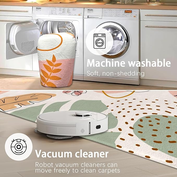 - 4. Easy Clean house hold floral pink carpet: large machine washable Boho rug can be wiped up quickly. For deeper cleaning, our runner carpet for launfry are machine washable, making it easy to keep your home looking fresh and tidy.