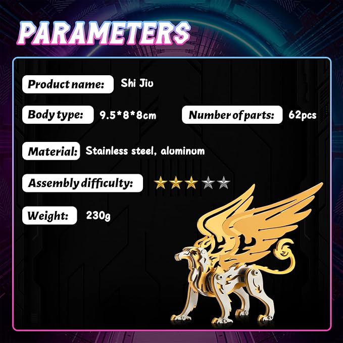 - 【Easy to Assemble】:3D metal puzzle griffon diy model kit can be easily assembled,assembling a 3D model only requires referring to the manual,using some gadgets,and being patient and observing to complete the task.Experience a challenging and enjoyable process during assembly.