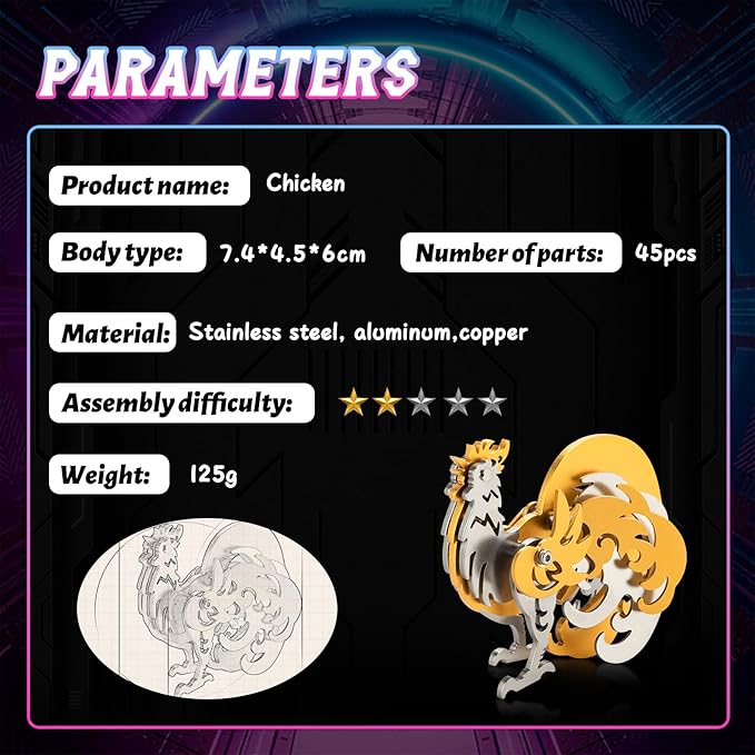 - 【Easy to Assemble】:3D metal puzzle rooster diy model kit can be easily assembled,assembling a 3D model only requires referring to the manual,using some gadgets,and being patient and observing to complete the task.Experience a challenging and enjoyable process during assembly.
