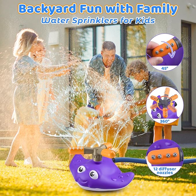 - 【Best Summer Outdoor Toys for Toddlers】This sprinklers for yard cool water through 12 nozzles and the sprinkler heads could be rotated 45°. By adjusting angle to control the water spray height and width, it's ideal for outside summer yard lawn pool water games toys for 3 4 5 6 7 8 9 10 11 12. Improve coordination and agility abilities, finding summer water fun in sports. Outdoor backyard games for kids family and water sprinklers for dog. Get ready for a summer of water play and baseball fun with our sprinkler toy!