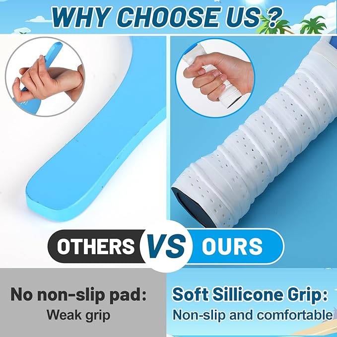 - Comfortable Cushion Grip: The pickleball racket for family games features a non-slip, sweat-absorbing grip made from soft, wear-resistant material. It fits perfectly in your hand, reduces the risk of sports injuries, and stays comfortable even during intense play.