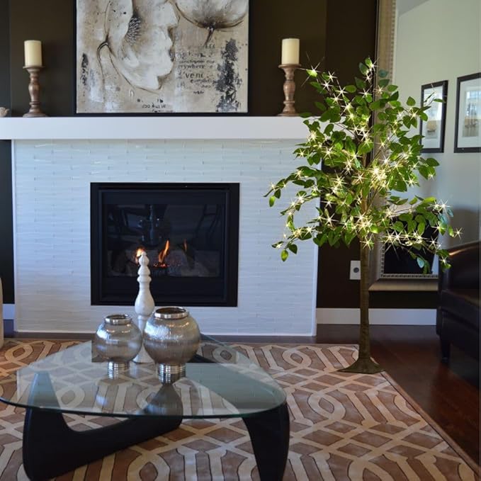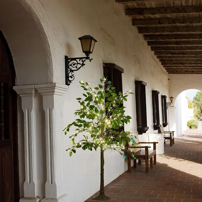 - 【Authentic Look】: Beautifully formed with a natural silhouette, detailed ficus leaves and lifelike tree bark finish over the light tree to bring a magical look inside or outside
