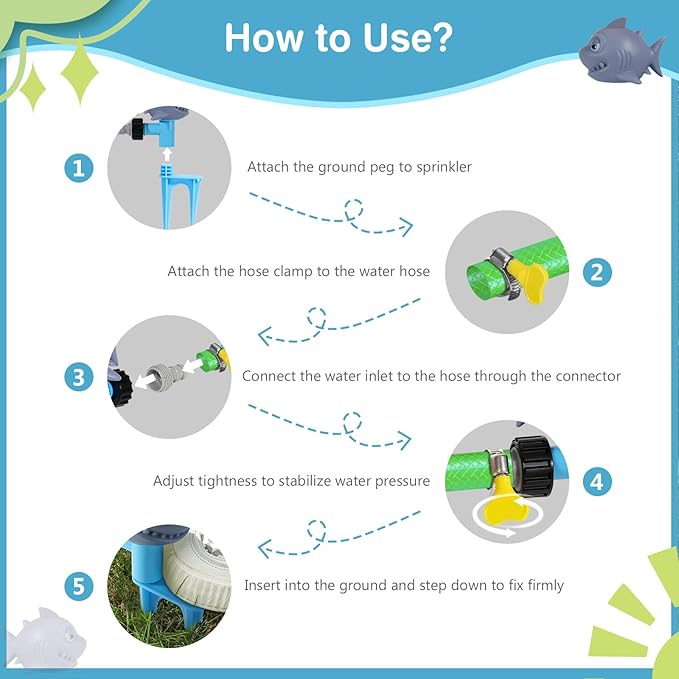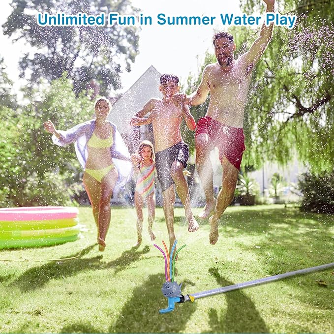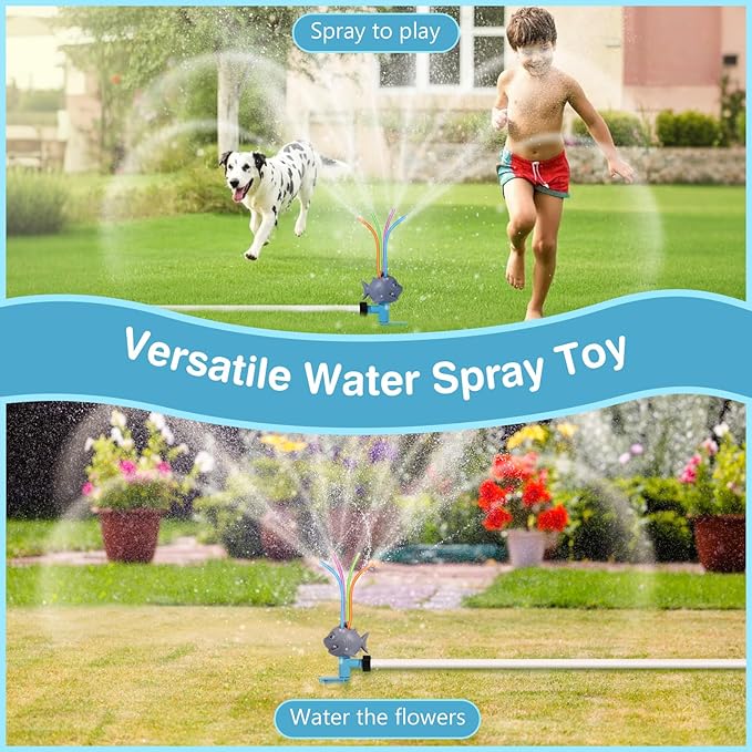 - Cute Shark Shape: Water spray toy adopts cute shark shape design with 4 colorful hoses, making it looks vivid and energetic. It attracts children's attention and creates an enjoyable playing experience for them. Kid sprinkler for outdoor brings endless joy to kids and is a cool summer gift for kids.