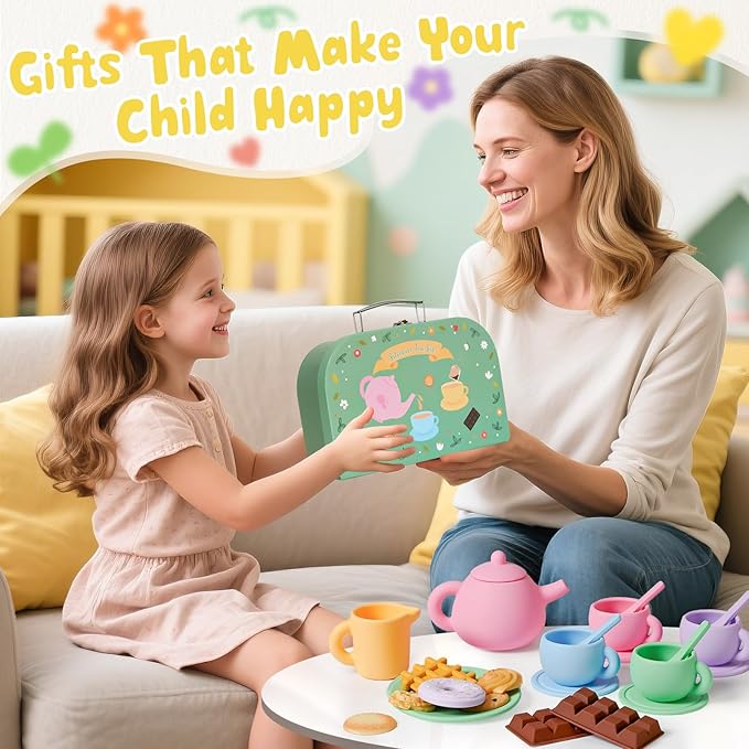 - IDEAL GIFTS: Packaged in an exquisite carrying case, our silicone tea set for toddlers 3-5 makes a thoughtful gift for birthdays, Christmas, or any special occasion. This is great toys for 3 4 5 year old little girls and ideal gift. Also can be used as household decorations when not playing. Making it a perfect back to school, birthday, Christmas, Easter, New Year gift