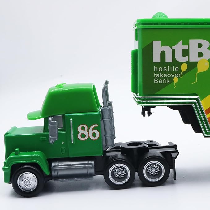 - The body is made of metal, the chassis and wheels are made of plastic, and the wheels can slide; trucks can load small cars into the carriage, adding fun to children!