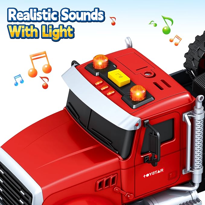 - 【Large Truck Toy】This super value large truck include 21" truck and tractor and mini dump truck.Children can experience the excited of transporting tractor and truck and also experience the fun of loading and unloading cars from the tailboard. Detachable truck head and flexible knuckle can be turned left and right, and movable tailboard can be moved up and down and detachable.
