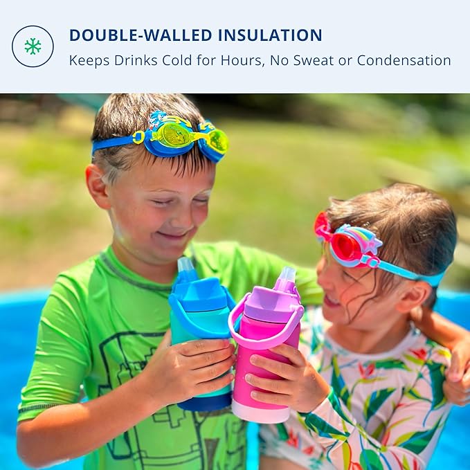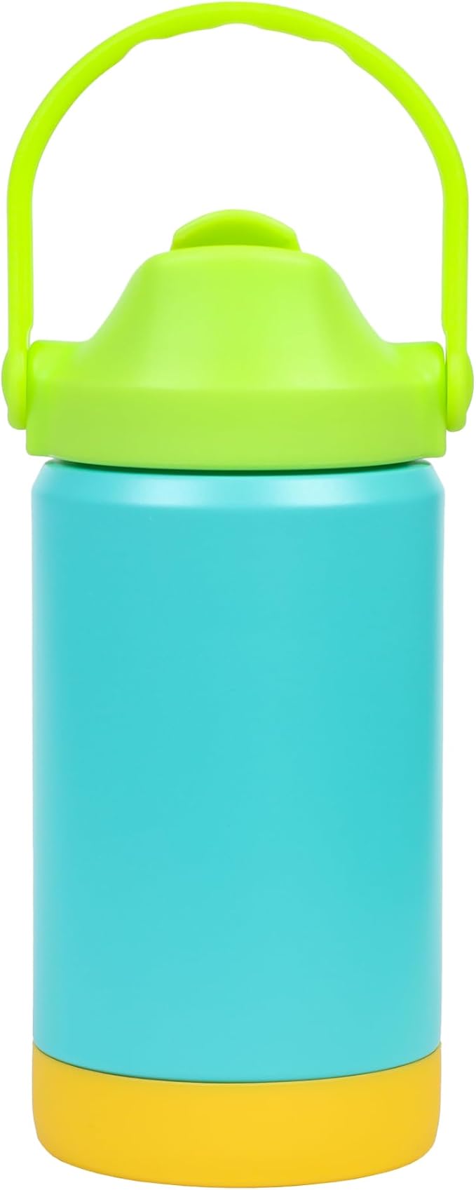 Re-Play 12 oz Water Bottle for Kids - Vacuum-Insulated Stainless Steel Tumbler with Flip-Straw, Silicone Base and Handle - Spill and Leak-Proof Design, Dishwasher and Freezer Safe, Aqua Assorted