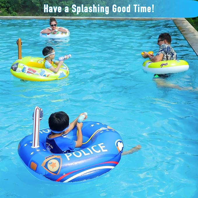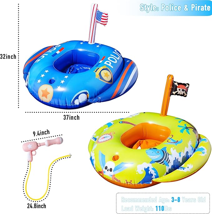 FindUWill 4 Pack Police Pirate Baby Inflatable Pool Floats, 2Pcs Pool Floats and 2 Pcs Water Guns for Kids, Inflatable Water Toys for Summer Fun(2 Patterns)