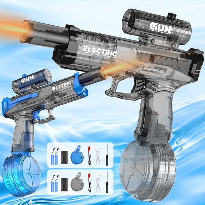 2 Pack Electric Water Guns,Water Soaker Blaster with Muzzle Light,Squirt Gun Range 23-32 FT,Outdoor Party Summer Water Shooting Game Toy with 4 Batteries,Ideal Watergun Gift for Kids & Youths.