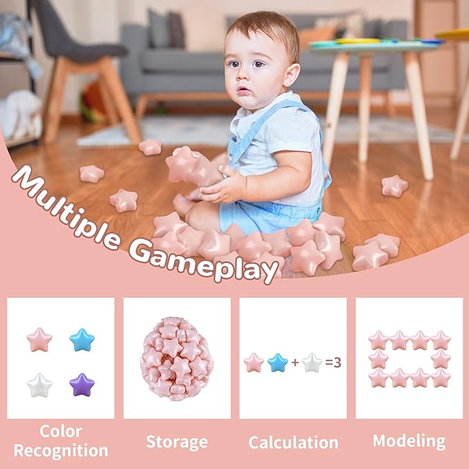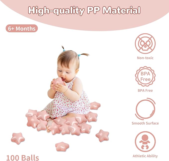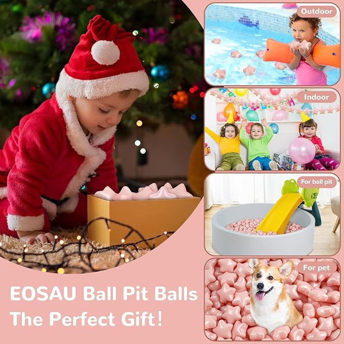 - BABY APPROVED: EOSAU star shape balls for ball pit are made of food-grade PE material, BPA and phthalate-free, non-toxic and odorless; plastic balls measure 2.16 inches to prevent accidental swallowing, very safe for babies, toddlers and kids