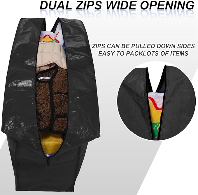 - Easy Access with Opening Design and Sturdy Handles: the large moving bags are equipped with wide opening and double zippers; This thoughtful design ensures smooth and easy access to your stored items; The reinforced handles make moving the bags effortless, ensuring convenience; Contained within, your belongings remain secure, yet easily reachable