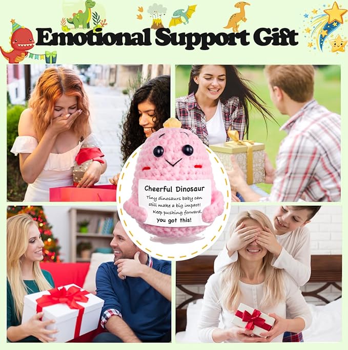 - IYOOCSS Funny Easter Basket Stuffers Positive Crochet Animals Dinosaur, Stress Relief Gifts for College Student Graduation Girls Boyfriend Husband Women Birthday Desk Decor